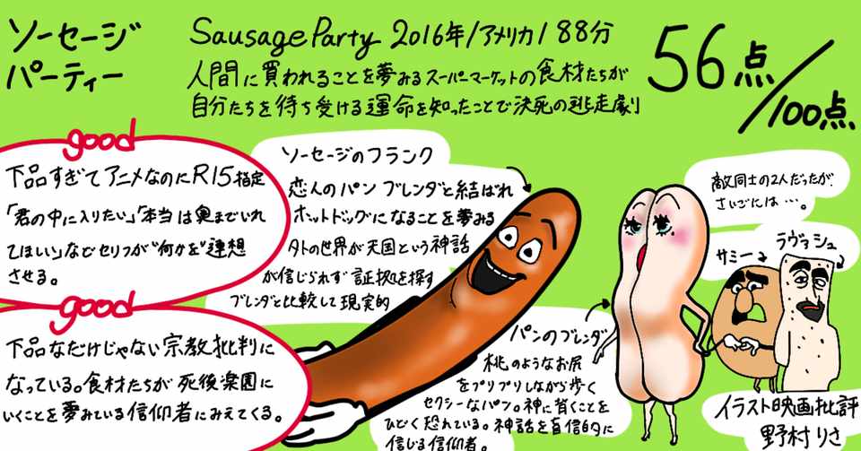 イラスト映画批評 ソーセージパーティー56点 野村りさ コミックエッセイ Note